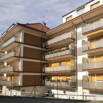 In questo condominio si è fatto un ripristino completo del balcone demolendo i vecchi pavimenti in piastrella, rifacendo le impermeabilizzazioni e ripristinando i frontalini eseguendo dove necessario il trattamento dei ferri di armatura della struttura. Sono state sostituite anche le ringhiere dei balconi, usando una struttura in acciaio inox e pannelli in vetro. Ultima lavorazione, ma non meno importante, è stato il ripristino delle piastrelle di rivestimento delle facciate e il ripristino degli intonaci e della pittura.